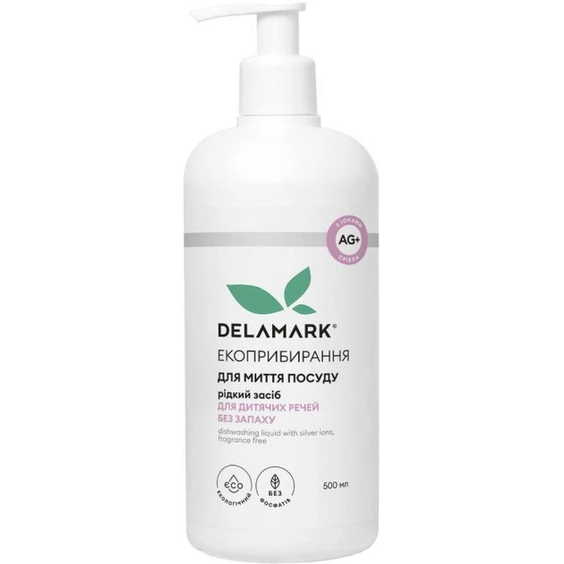 Засіб для ручного миття посуду DeLaMark з іонами срібла для дитячого посуду без запаху 500 мл (4820152331038)