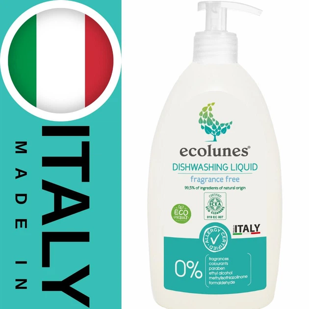 Засіб для миття посуду Органічний Гіпоалергенний Без запаху, Ecolunes 500 мл