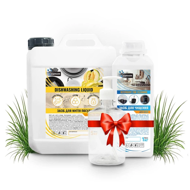 Набір засобів для миття посуду МЕДОВА ДИНЯ 5 кг C&WASH + Антижир 1 кг + флакон