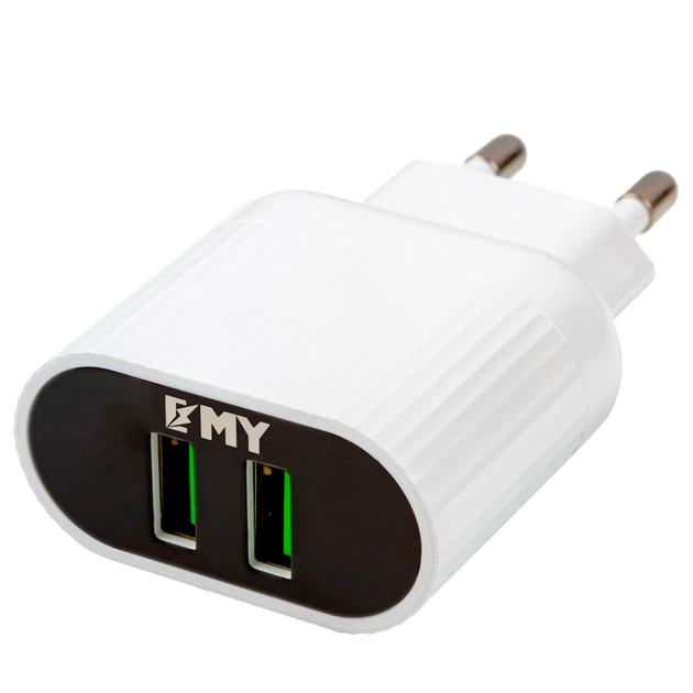 Набір 2 в 1 CЗУ With Iphone Cable 110-240V MY-220, 2 x USB, 5V/12W, Output: 5V/2.4A, White, Blister-box