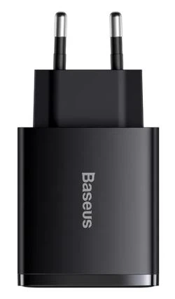 Мережевий зарядний пристрій Baseus Compact Quick Charger USB+Type-C (20Вт, 3A, адаптер, 2 роз'єми, швидка зарядка) - Чорний