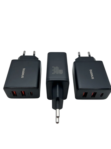Сітчастий зарядний пристрій Baseus Compact Quick Charger QC3.0+PD3.0 30W 2USB+Type-C 3A Чорний