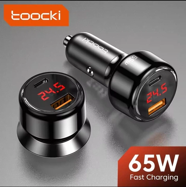 Автомобільний зарядний пристрій Toocki 65W (1 Type-C 65w 1 USB 30w) з дисплеєм