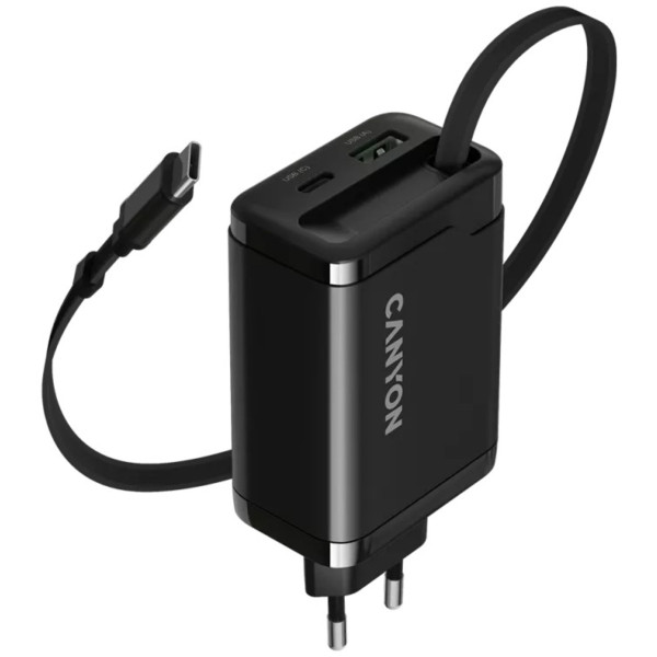 Canyon OnCharge 65RC Build-In Cable USB-C 65W 1xPD 1xQC Black (CNS-CURC65ACB) OnCharge65RCBuild-InCableUSB-C65W1xPD1xQCBlack