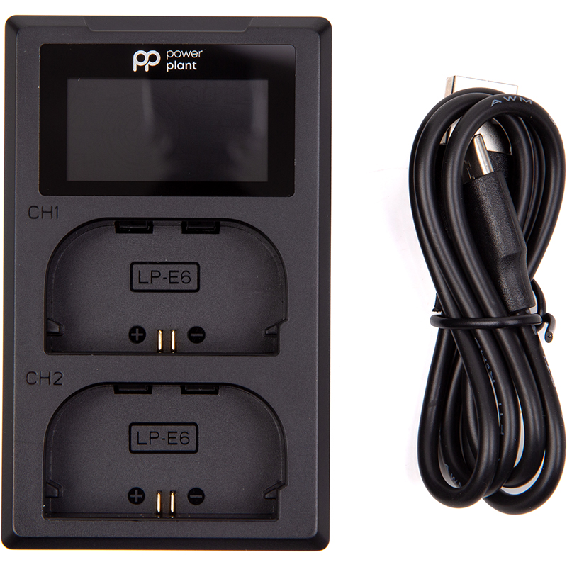 Зарядний пристрій PowerPlant Canon LP-E6 для двух акумуляторів, LED екран CH980543
