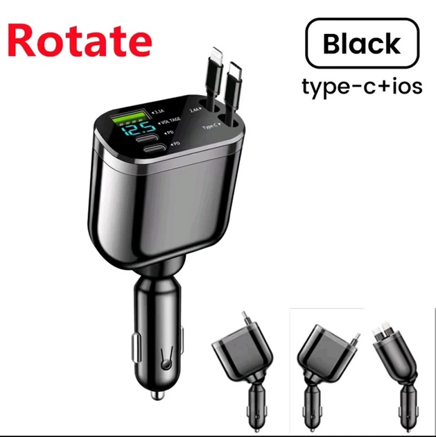 Автомобільний заряний у прикурювач 3.1 A+ PD+PD+Type-C+кабель iOS+C QC 3.0 з вольтметром