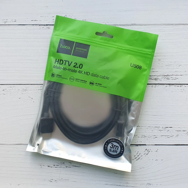 HDMI відео кабель Hoco US08 HDTV 2.0 data cable 4K HD 60Hz 3 метра Чорний