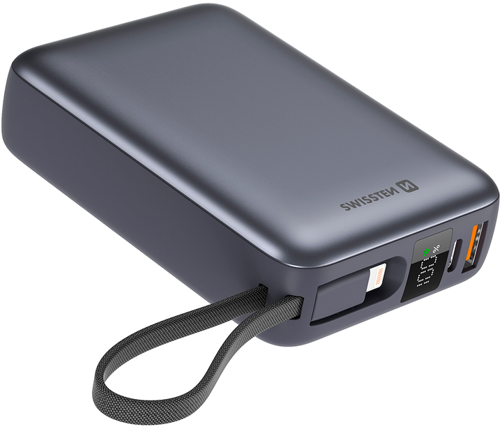 УМБ Swissten Power Bank 20000mAh With Built-in Cables USB-C And Lightning 22.5W Silver (8595217490598)