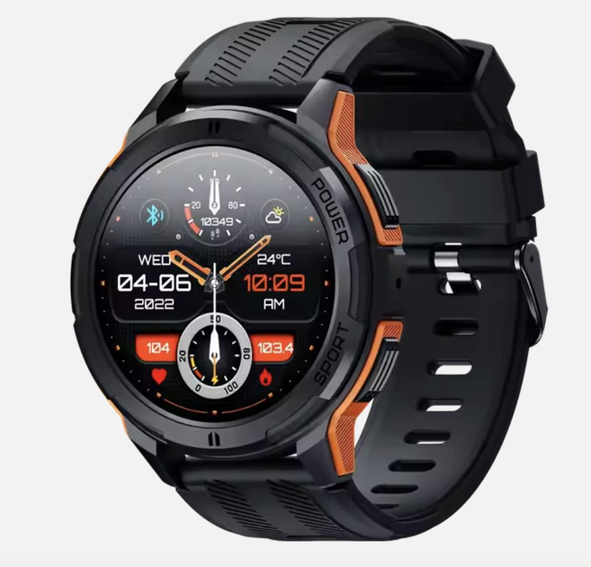 Чоловічий смарт-годинник AMOLED 1.45" з ліхтариком, IP67, Bluetooth-дзвінки, тонометр, пульсоксиметр, фітнес-браслет для спо