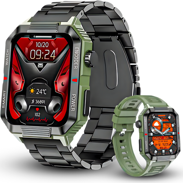 Чоловічий смарт-годинник з HD-дисплеєм та функціями контролю здоров'я, з 2 ремінцями
