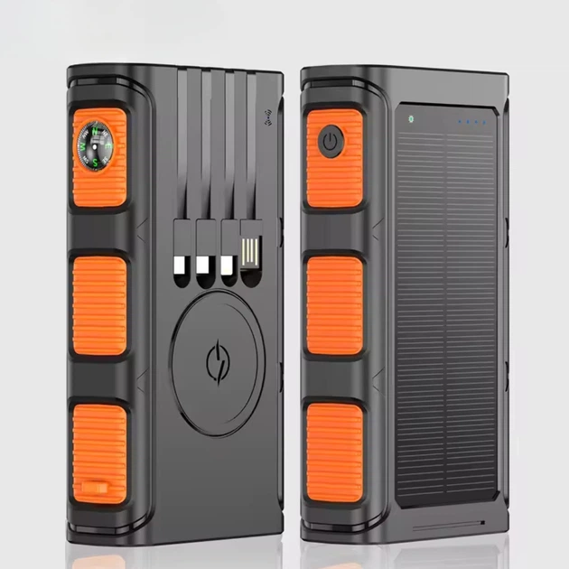 Портативний зовнішній акумулятор, павербанк на сонячній батареї з бездротовою зарядкою 20000мАч Orange