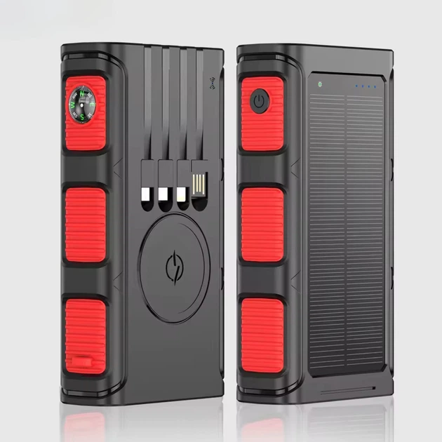 Портативний зовнішній акумулятор, павербанк на сонячній батареї з бездротовою зарядкою 20000мАч Red