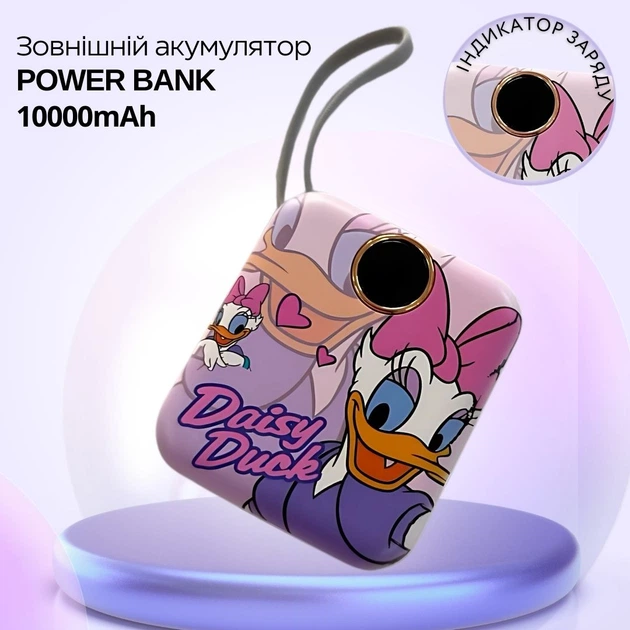 Павербанк зі швидкою зарядкою 10000мАг, Powerbank з двома вбудованими кабелями Type-C і Lightning, 120W Mickey