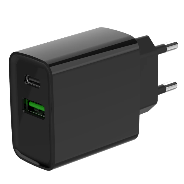 Сітчасте зарядне пристрій Gembird A-UC-PDQC20-01-BK (USB Type A + USB Type C) 20 Вт, Чорний