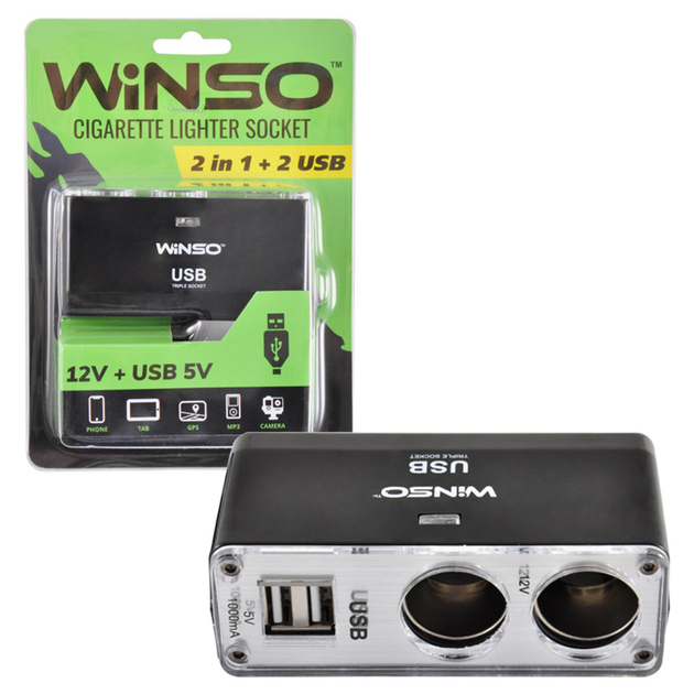 Розгалужувач прикурювача Winso 2в1 з 2 USB для автомобіля 12V зарядка для телефону та гаджетів (1LO-TH11C)