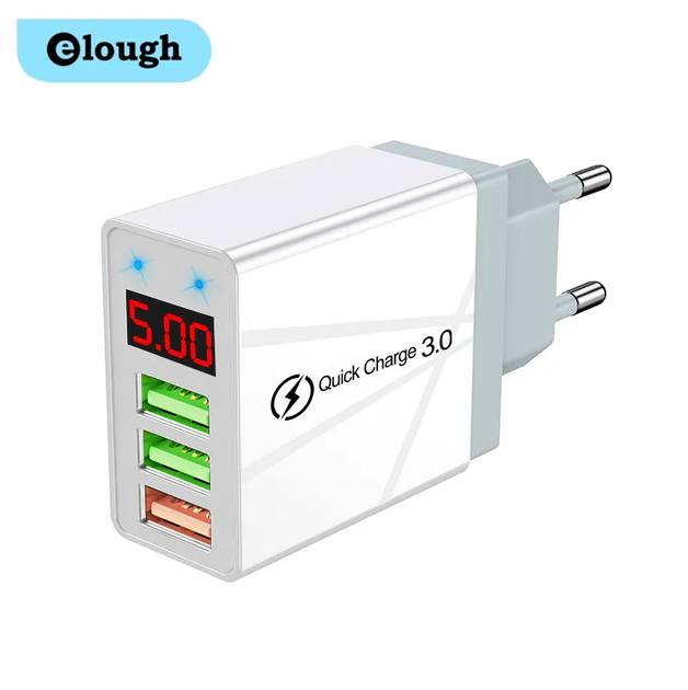 Мережевий зарядний пристрій 3 port USB/LED зарядний блок зарядний блочок для телефону смартфона Elоugh JH22W