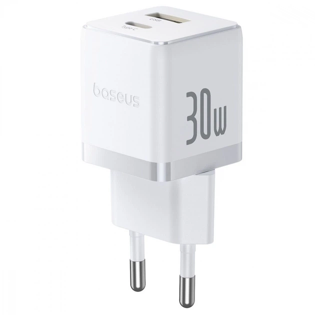 Мережевий Зарядний Пристрій 1Type-C+1USB Baseus Palm Fast Charger 30W White