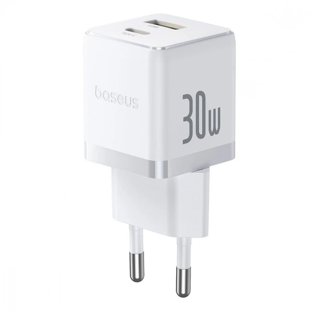 Сітчасте зарядне пристрій 1USB + Type-C Baseus Palm Fast Charger 30W EU Moon White 71978