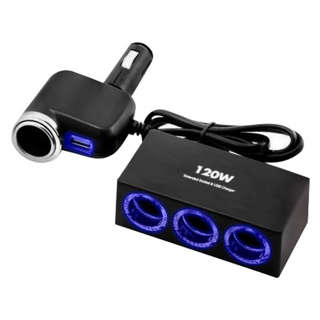 Розгалужувач для авто прикурювача на 4 гнізда (трійник автомобільний) Olesson No-1527 2USB 12V-24V АЗУ 3 в 1 (1527)