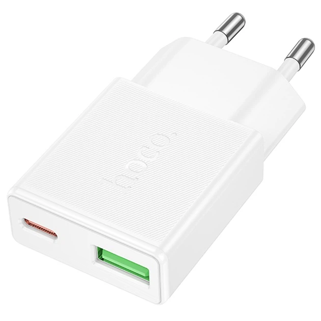 Сітчасте зарядне пристрій Hoco N73 Type-C/USB-A PD20W+QC3.0 швидке заряджання для портативних пристроїв Білий