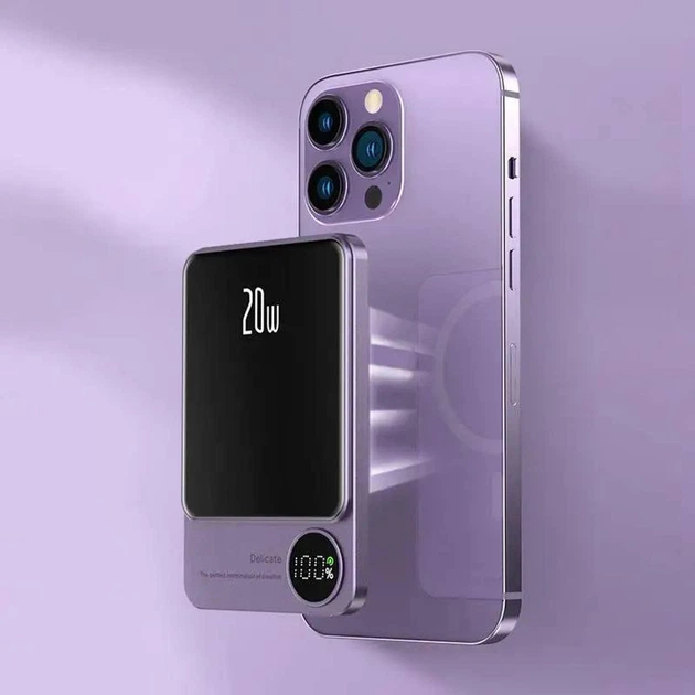 Бездротовий Повербанк MagSafe УМБ Power Bank Q9 10000 mAh 20W для iPhone Фіолетовий