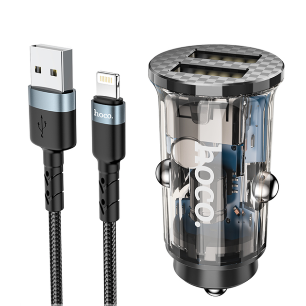 Зарядка для телефона в автомобіль Hoco із кабелем Lightning HOCO DZ3 2USB 2.4A чорний