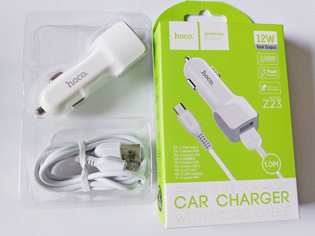 Зарядний пристрій автомобільний 2USB 2,4А +кабель microUSB Z23 Код/Артикул 5313