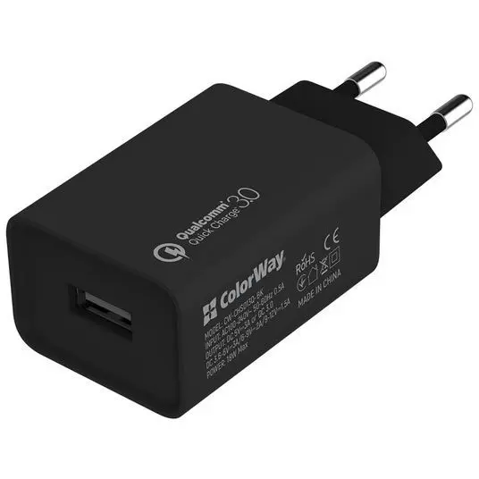 Зарядний пристрій ColorWay Quick Charge 3.0 18W Black + кабель micro-Usb 1 м Black