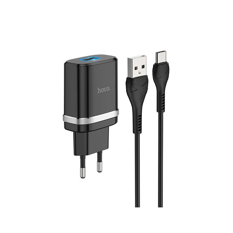 МЗП 1USB Hoco C12Q Black (3A) + кабель USB Type-C 6931474716293