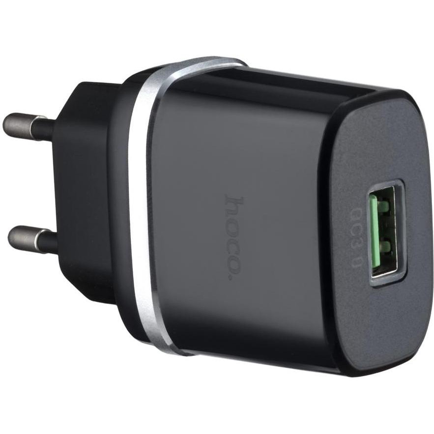 Мережевий зарядний пристрій Hoco C12Q (1USB, 3А) QC3.0 Black (S23567) + кабель MicroUSB S23567