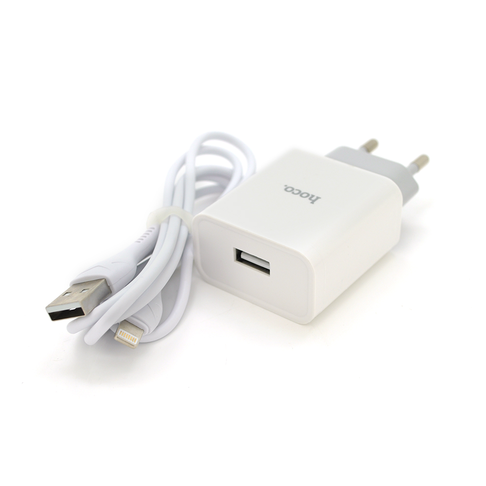 Набір HOCO C81A МЗП 1xUSB+ кабель iPhone, 2.1A, White, Blister-box HOCO C81AW