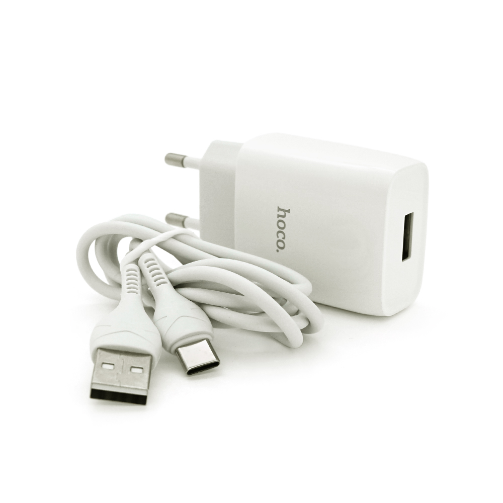 Набір МЗП 110-240V HOCO C72A+ кабель Type-C, 1xUSB, 2.4A, кабель 1м, White, Blister Hoco C72AW / Tc