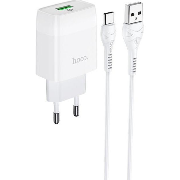 Мережевий зарядний пристрій HOCO C72Q Glorious single port QC3.0 charger set(Type-C) 18W White 6931474732552