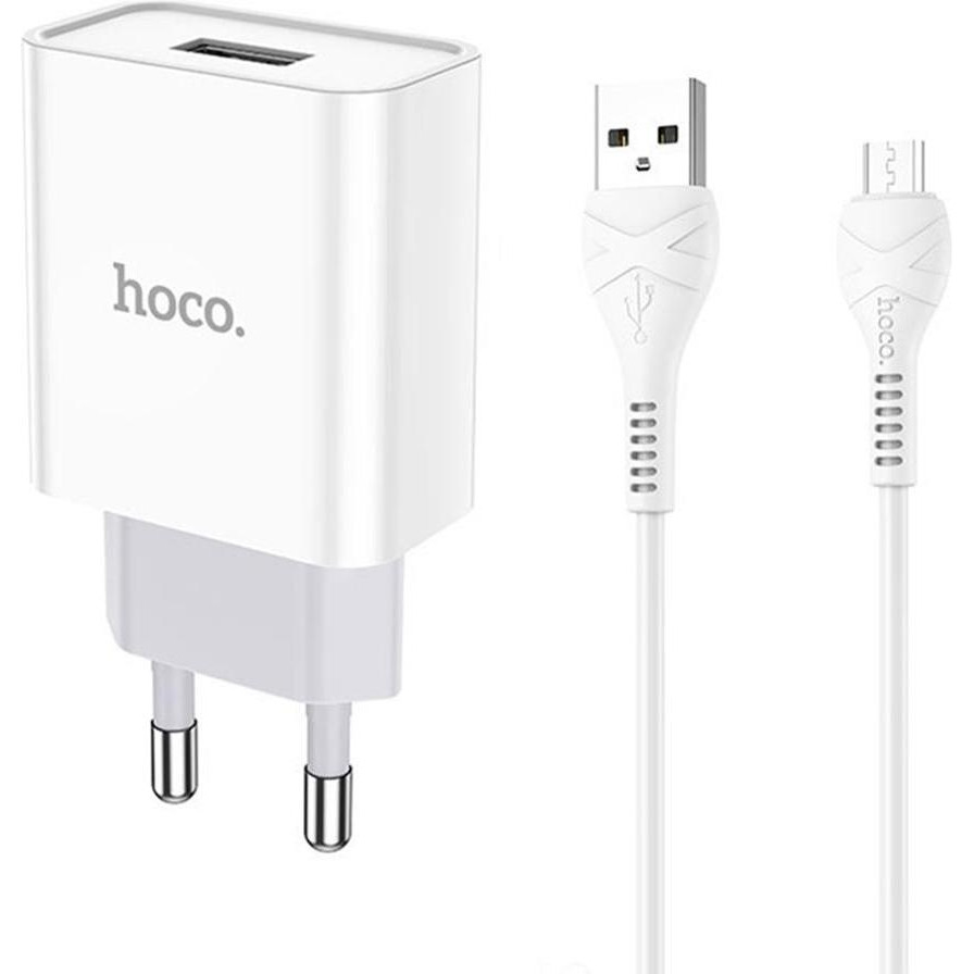 Зарядний пристрій Hoco C72A Glorious (1USB, 2.1А) White (6931474713001) + кабель MicroUSB 6931474713001