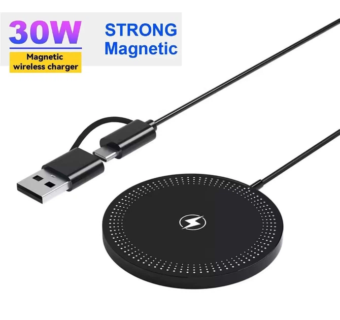 Магнітний бездротовий зарядний пристрій MagSafe 30 Вт Швидка бездротова Qi зарядка для Apple Samsung Dual Ports USBA+TypeC
