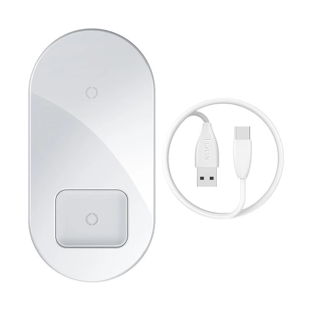 Бездротовий зарядний пристрій Baseus Simple 2в1 (для телефонів та годинників, швидка зарядка, QC / PD 18W, Type-C) - Білий