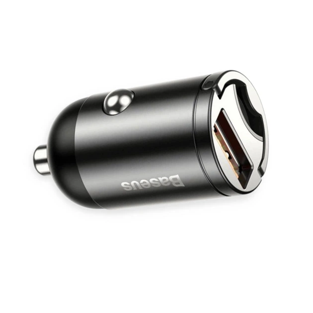 Зарядний пристрій від прикур. Baseus 1USB 5.0А QC (30W), сірий Євро