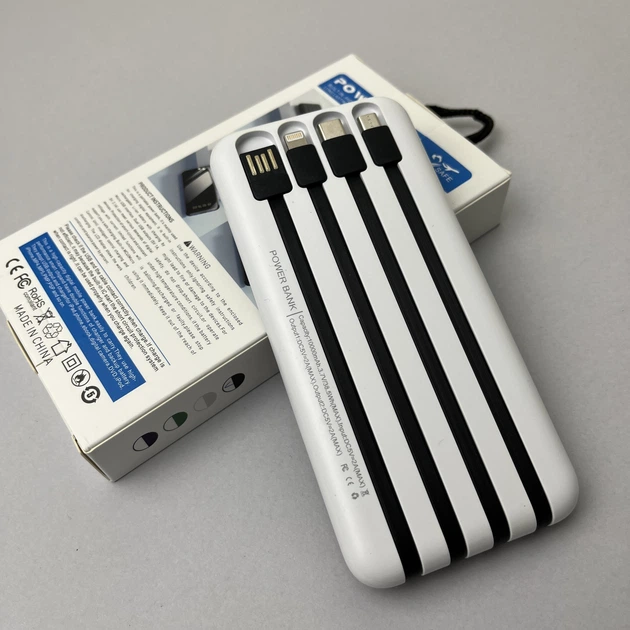 Power Bank Fast Charge з кабелем USB+Micro+Type-C+Lightning 10000mAh Білий