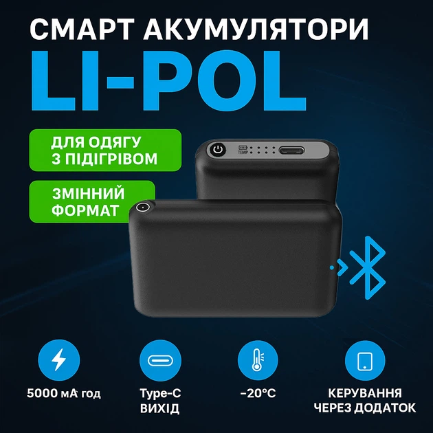 Акумулятор змінний Thermo Pulse 5000 mAh Li-Pol для шкарпеток та одягу з підігрівом APP Bluetooth, чорний