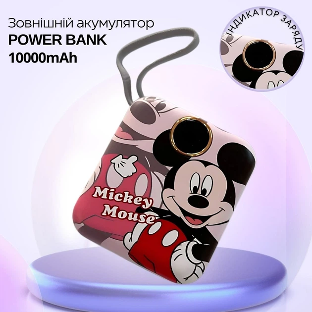 Павербанк зі швидкою зарядкою 10000мАг з двома вбудованими кабелями Lightning і Type-C 120W Mickey