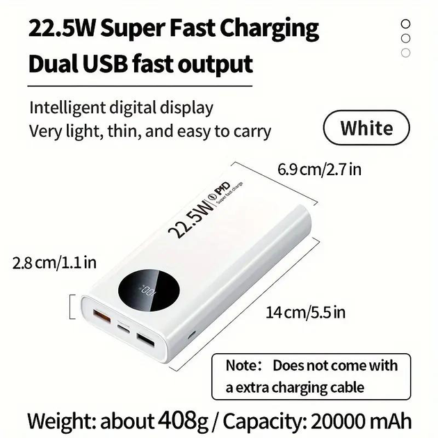 Портативний Power Bank 20000 mAh 22,5 Вт Dream Technology