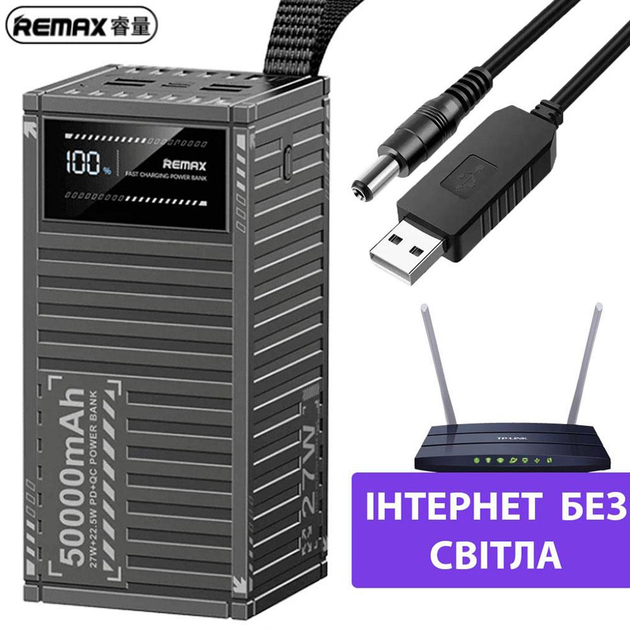 Power bank Павербанк для wi-fi роутера та модему REMAX 50000 mAh + Кабель usb dc 5 9 12v роутера до Повер Банку 895689 Black