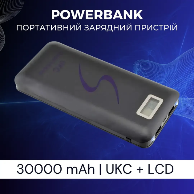 Портативний Power Bank UKC 30000 mAh зарядний пристрій з LCD екраном Чорний 2176