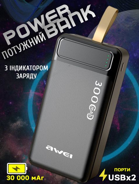 Портативна батарея акумулятор зарядний пристрій POWER BANK AWEI 22,5W 30000 mAh Black