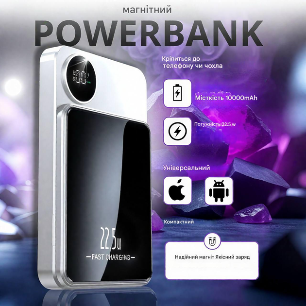 Повербанк 10000mah Powerbank Magsafe Fast charging бездротова зарядка 22,5W