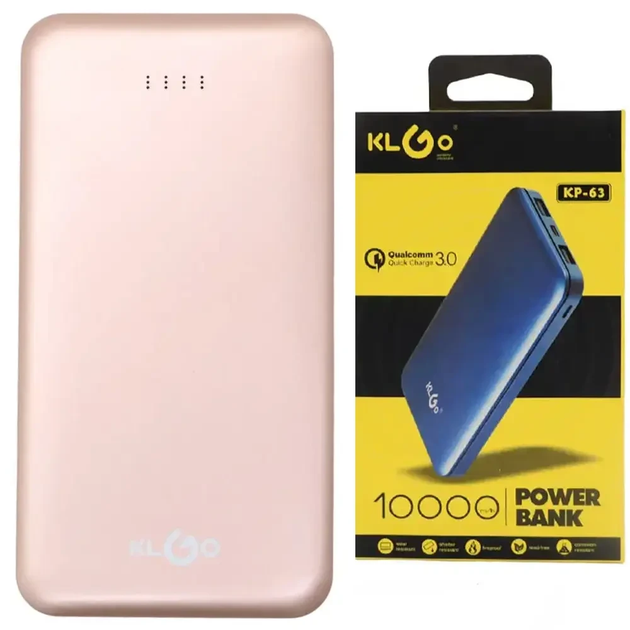Повербанк 10000mAh, 2хUSB, KP-63, Рожевий / Павер банк / Power Bank / Портативний зовнішній акумулятор
