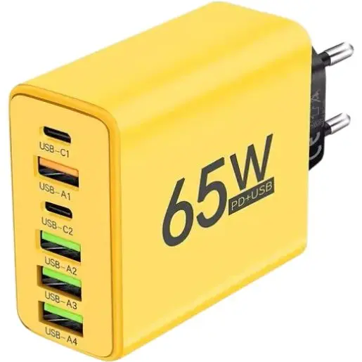 Мережевий зарядний пристрій Charger 65 Вт 4-USB + 2-Type-C адаптер для зарядки Yеllow