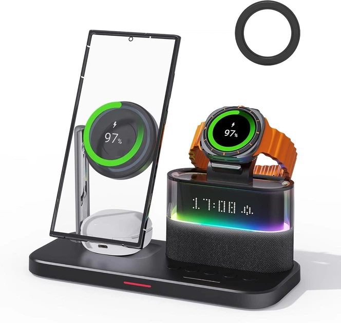 Магнітний бездротовий зарядний пристрій 3 в 1 SEEMINE C09, будильник, зарядна станція для мобільного навушників та годинника