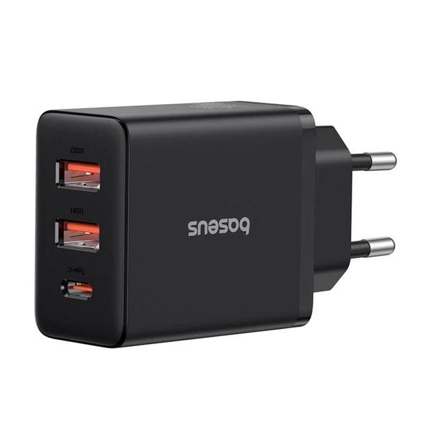 Адаптер мережевий Baseus Cube Fast Charger |2USB/1Type-C, 30W/3A, PD/QC| Black