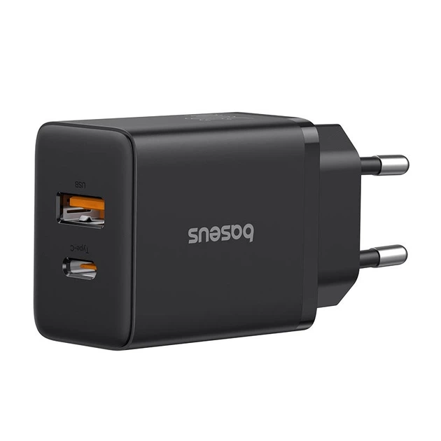 Адаптер мережевий Baseus Cube Fast Charger |1USB/1Type-C, 30W/3A, PD/QC| Black